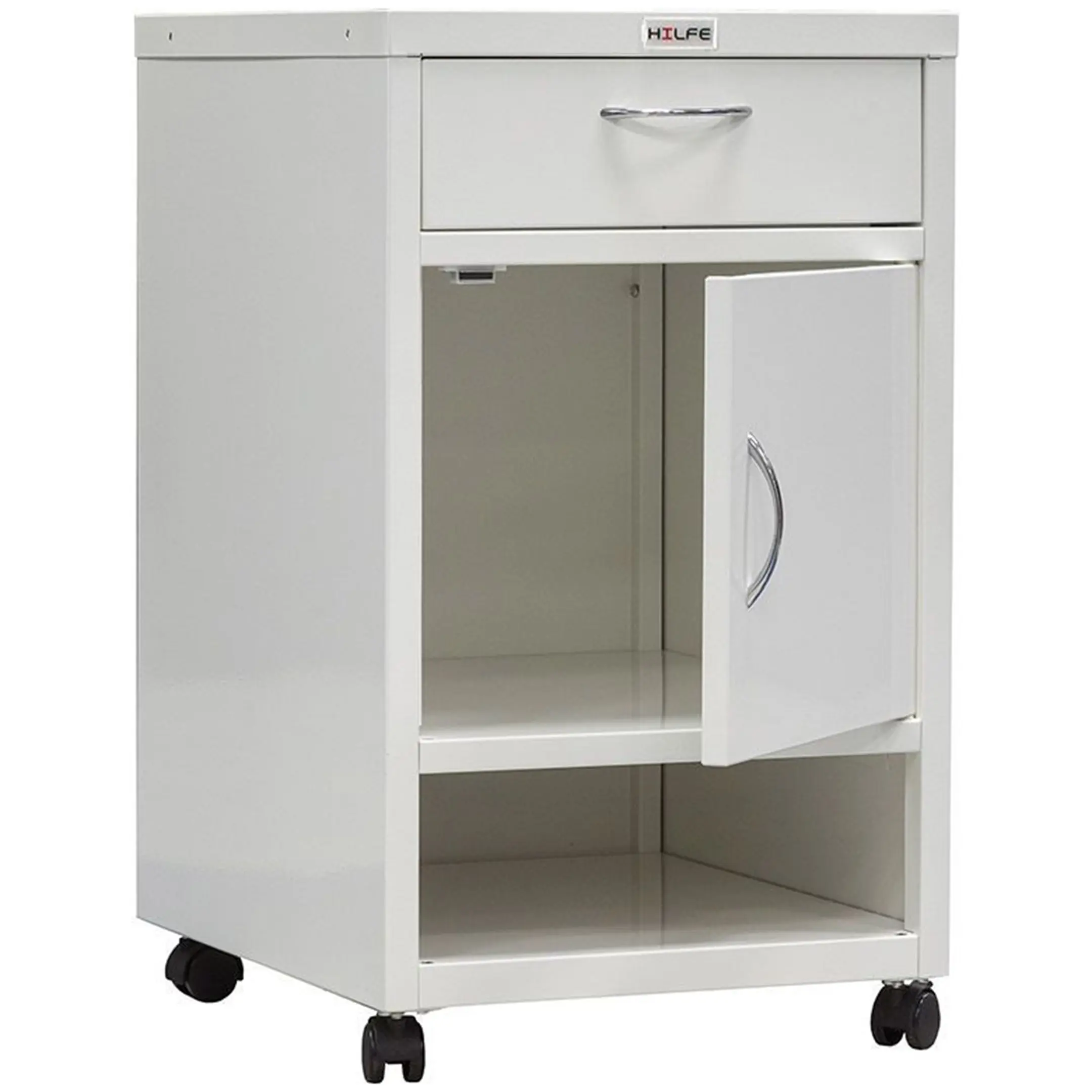 Опция: установка ключевого замка (2000 комбинаций), пластиковые опоры вместо колес, резиновые колеса. Окраска дверей, передних панелей ящиков или корпуса изделия полностью в другие цвета из палитры производителя - RAL 710-1, RAL 610-1 (при заказе от 70 штук).