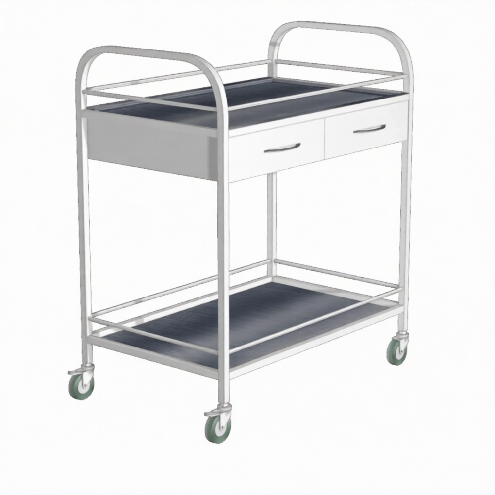 Стол манипуляционный с ограждением (ящик) СИо-2я (каркас белый) применяется для размещения на нем инструмента, материалов, медикаментов, в том числе применяемых в стоматологической практике, в кабинетах врачей, перевязочных, операционных, на постах медицинских сестер в отделениях больниц, в клиниках, поликлиниках и других медицинских учреждениях.
