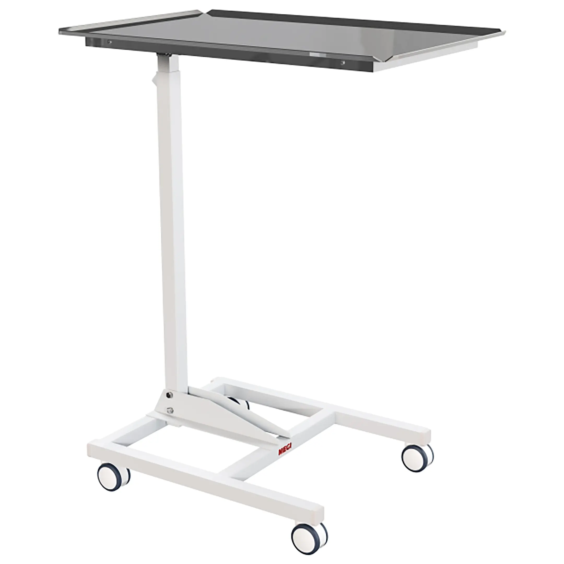 Каркас столика изготовлен из стального профиля, покрыт экологически чистым, эпоксидным полимерно-порошковым покрытием, устойчивым к регулярной обработке всеми видами медицинских дезинфицирующих и моющих растворов.
