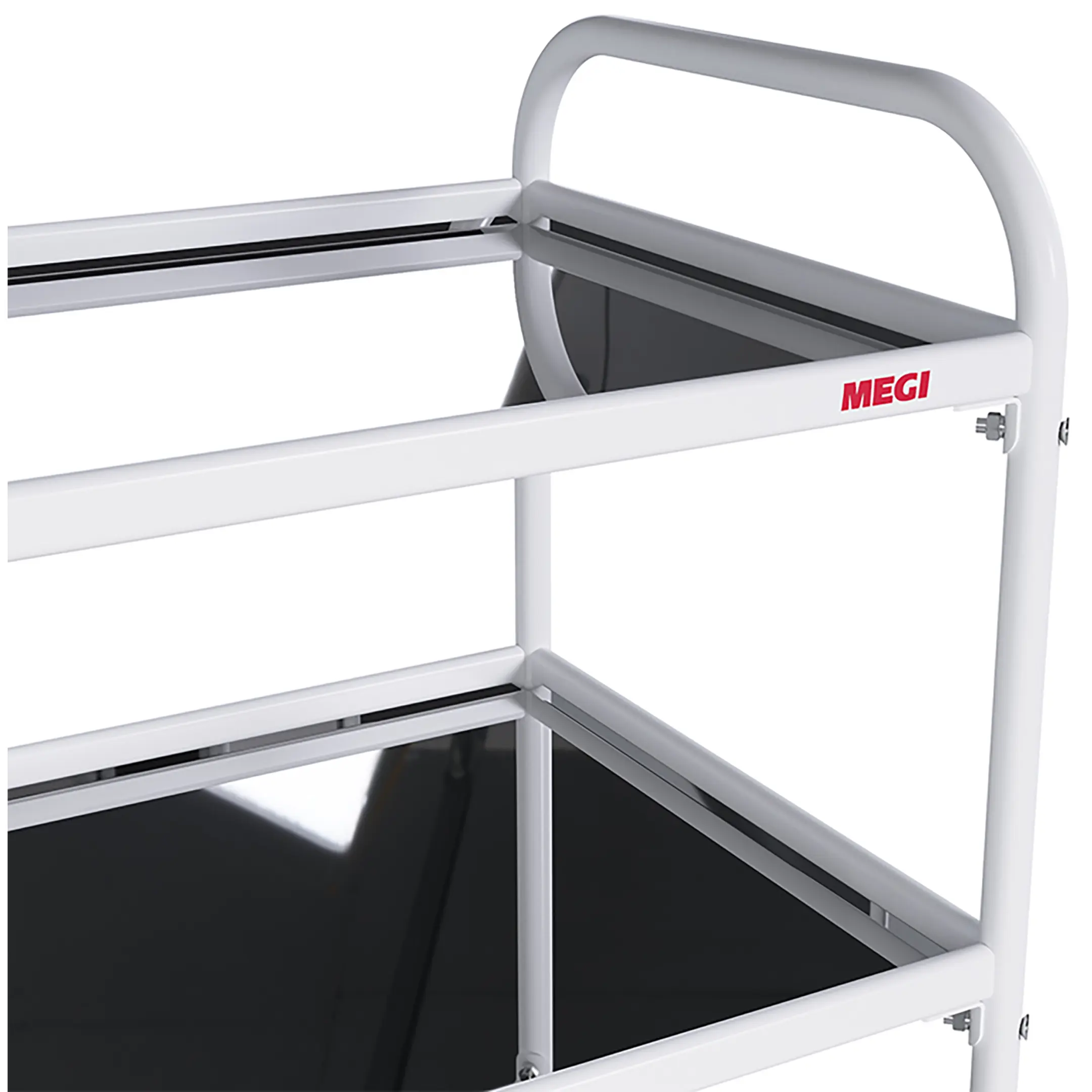 • колеса поворотные, самоориентирующиеся, диаметром 50 мм, комплектуются надёжной стальной вилкой с прецизионным радиально-упорным подшипником, ободом из полипропилена и шинкой из серого полиуретана, не оставляющего следов на полу (два колеса – с индивидуальным тормозным устройством).