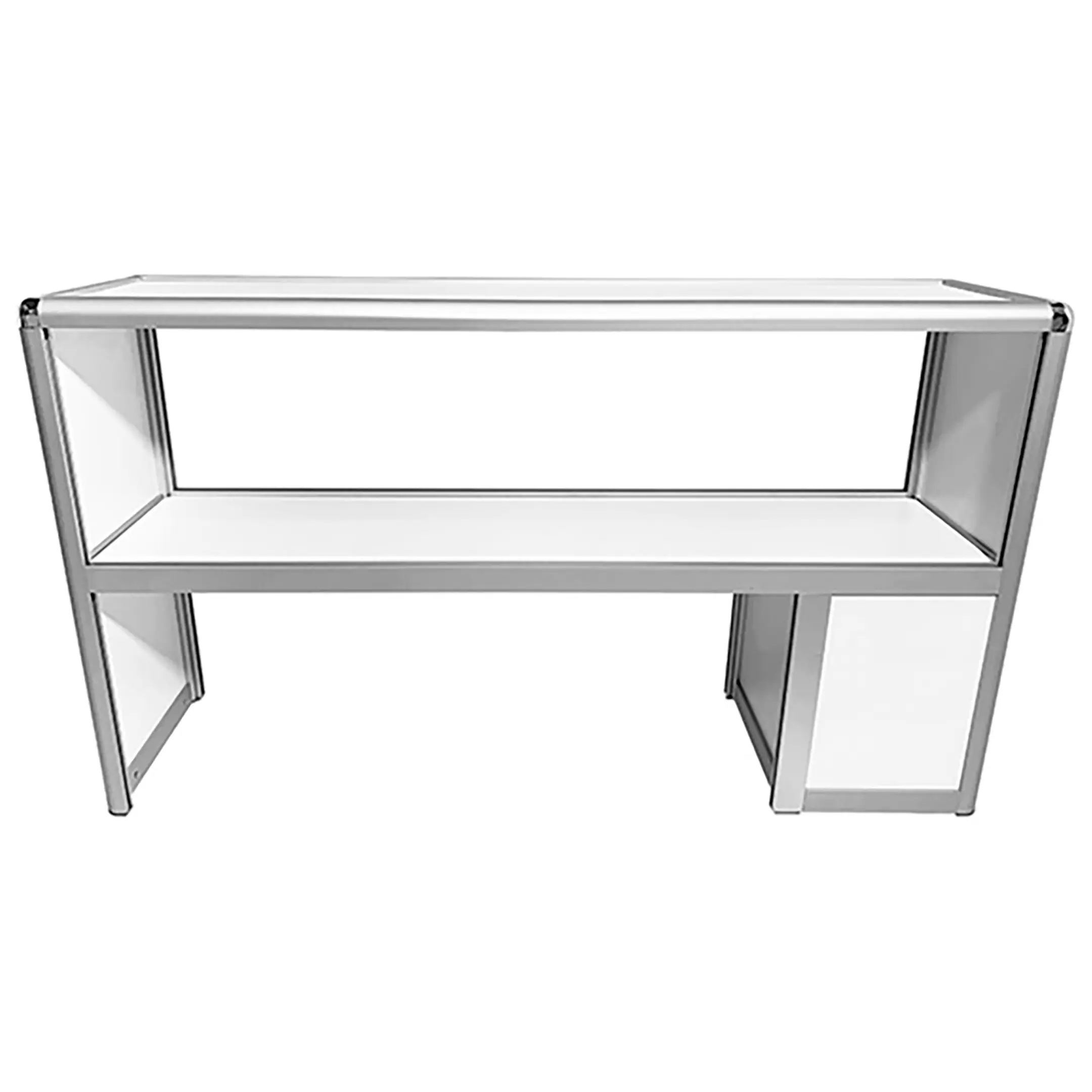 Надстройка стола лабораторного MED 15.002al (белый) — это функциональный элемент для организации рабочего пространства в лабораториях, предназначенный для установки на лабораторные столы серии MED 10al шириной 1200 мм. Модель оснащена двумя сквозными полками и тумбой со встроенной розеткой и выключателем на боковой стороне, что обеспечивает удобное размещение материалов и доступ к электропитанию. Каркас выполнен из алюминиевого профиля, гарантирующего легкость и прочность конструкции.