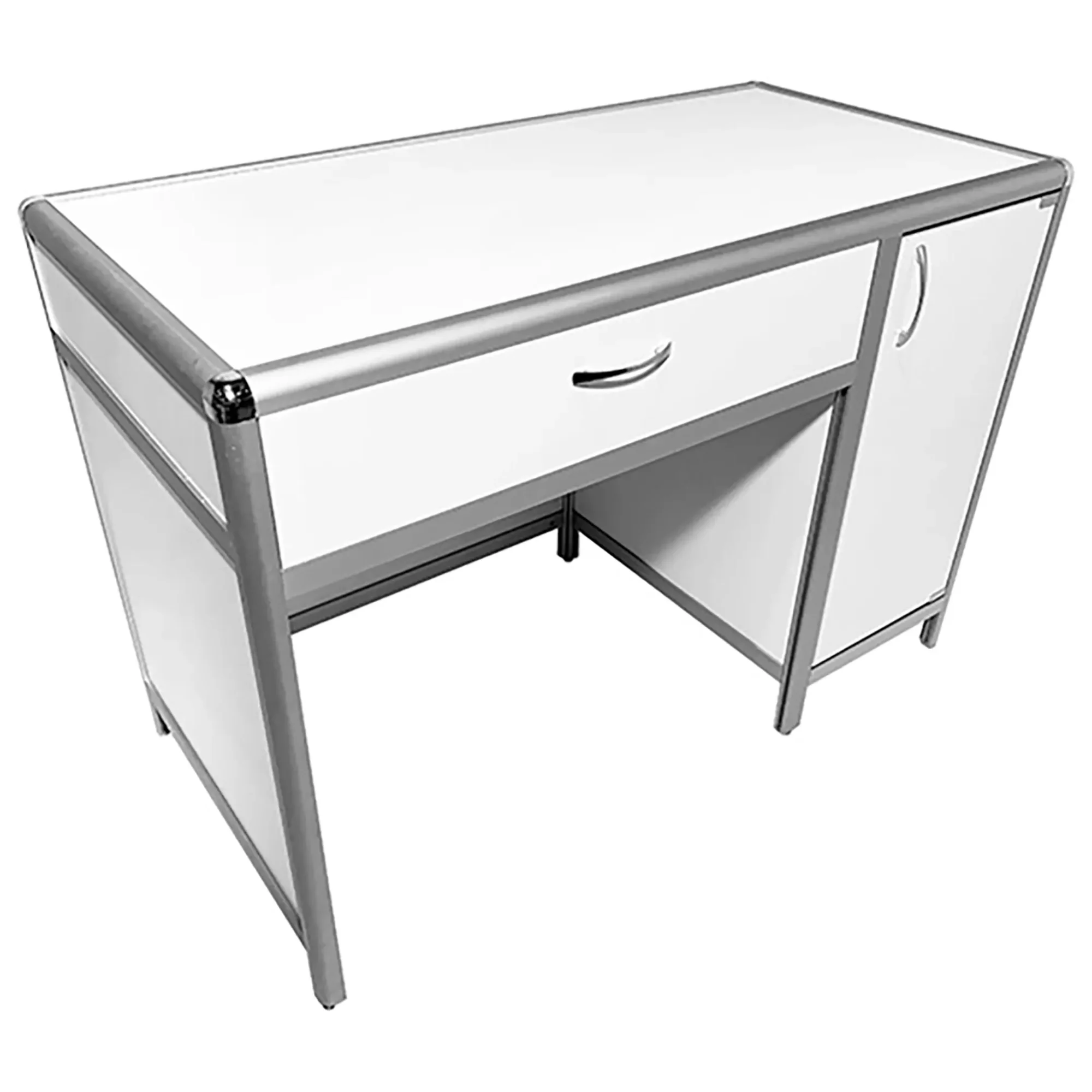 Стол лабораторный MED 10.005al (белый) — это идеальное решение для создания эффективного рабочего места сотрудников в лабораториях и медицинских учреждениях. Модель оснащена выдвижным ящиком под столешницей и боковой тумбой с распашной дверцей и полкой. Каркас выполнен из алюминиевого профиля, столешница из ЛДСП толщиной 16 мм.