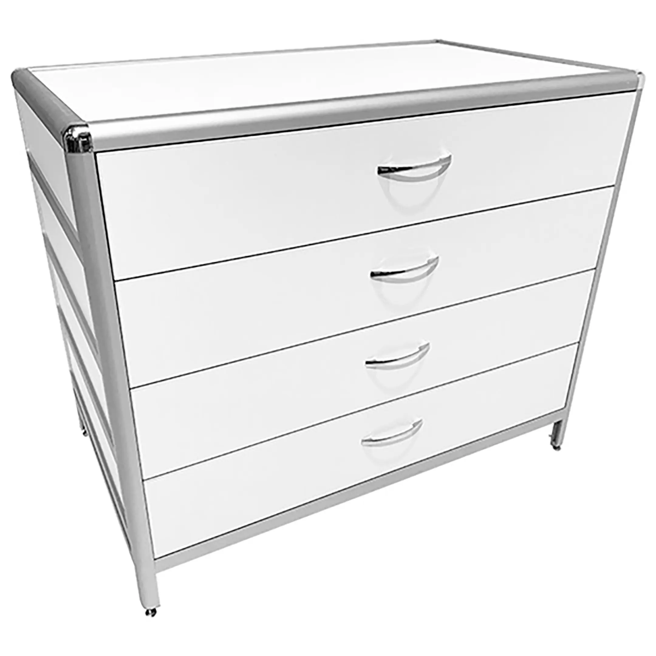 Стол-тумба лабораторная MED 12.007al (белый) — это функциональное решение для хранения лабораторного инвентаря, приборов и материалов в лабораториях и медицинских учреждениях. Модель оснащена четырьмя выдвижными ящиками, расположенными под столешницей, размером 434х70х895 мм. Каркас выполнен из алюминиевого профиля, столешница из ЛДСП толщиной 16 мм.