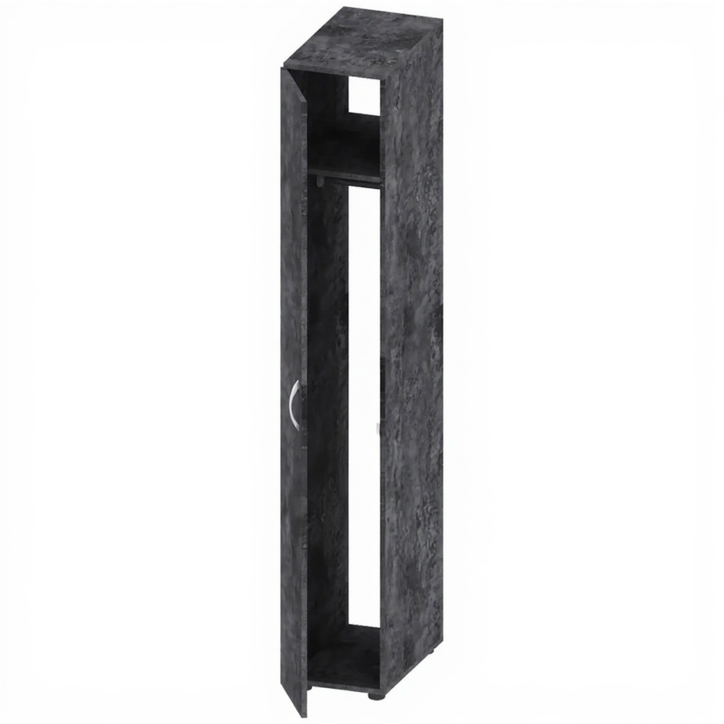 Шкаф пенал для одежды ОФ-СТ-168, Цемент Тёмный — это компактное и функциональное решение для хранения одежды в образовательных, офисных, административных и других учреждениях. Модель изготовлена из качественной ЛДСП толщиной 16 мм в цвете Цемент Тёмный, оснащена полкой для головных уборов, штангой для вешалок, замком и регулируемыми опорами.