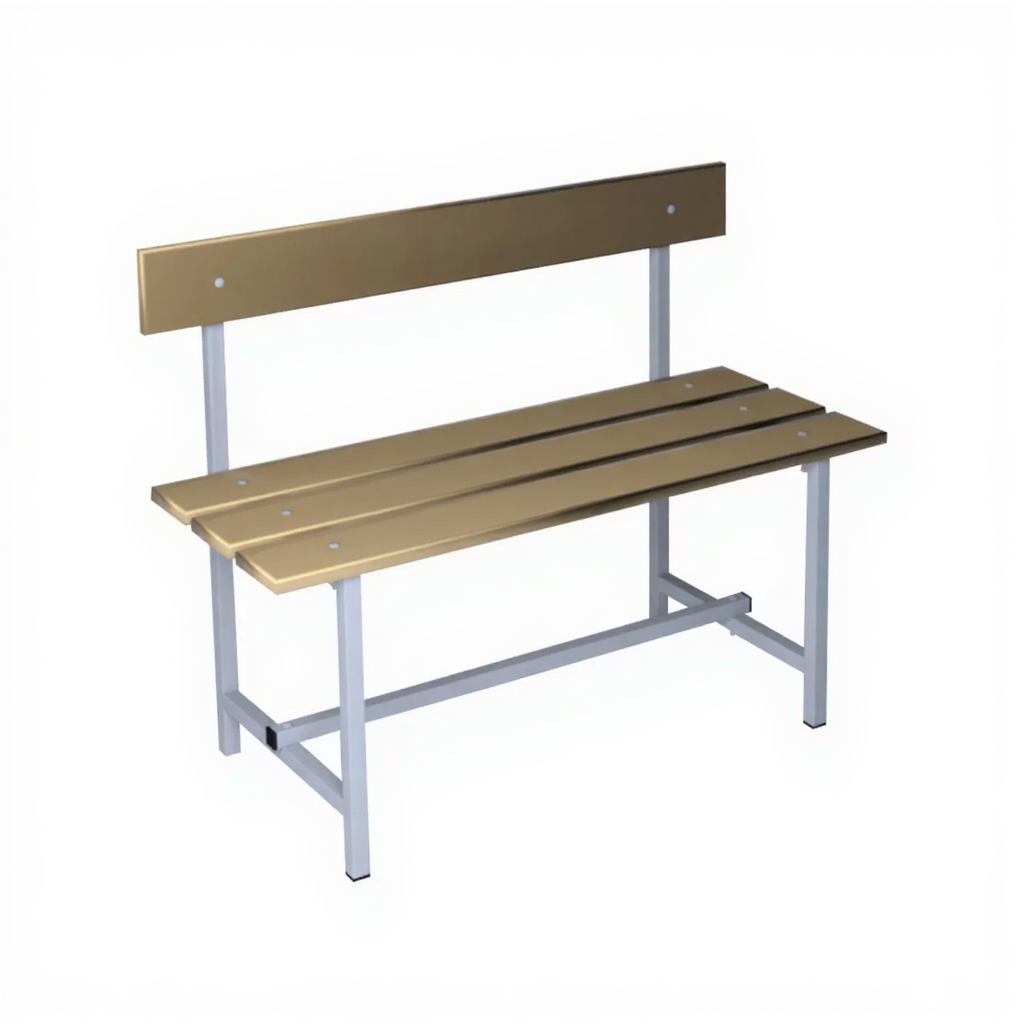 Скамейка со спинкой 2-х местная — это надежное и функциональное решение для оснащения учебных аудиторий, холлов, раздевалок и других общественных помещений. Модель представляет собой скамью с удобной спинкой на металлическом каркасе с сиденьем из качественной древесины. Каркас выполнен из квадратной трубы с порошковым покрытием, обеспечивающим защиту от коррозии и механических повреждений.
