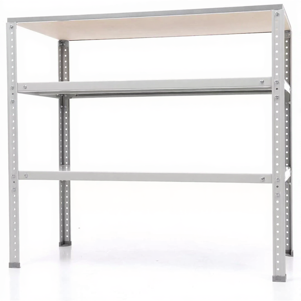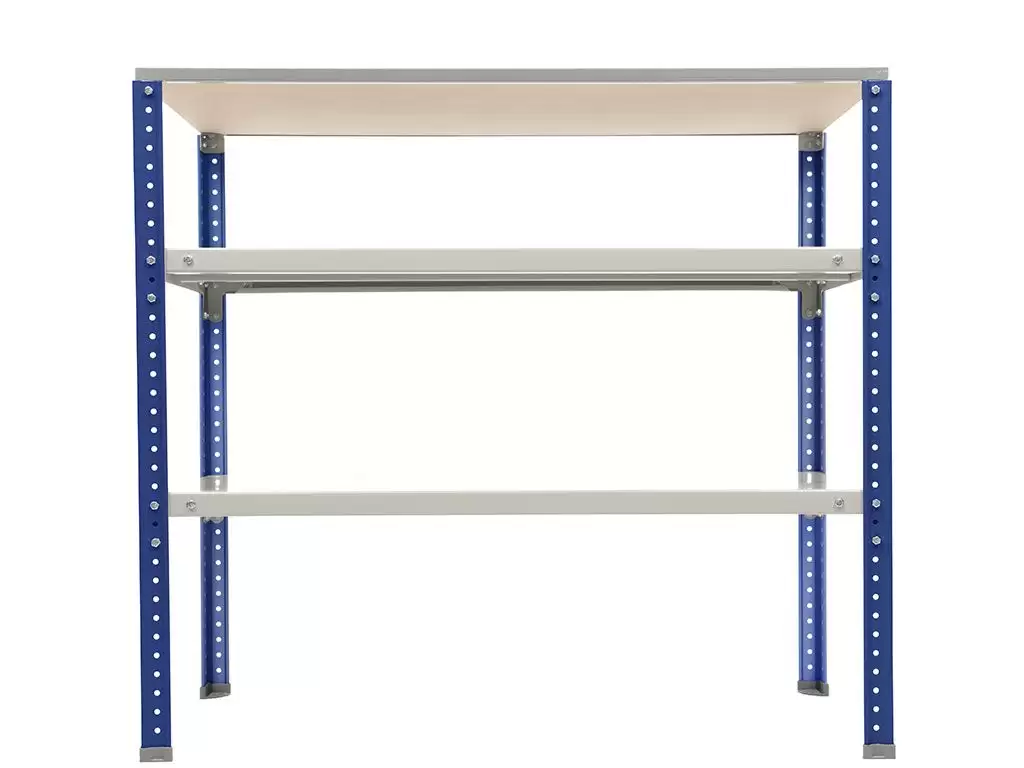 Обратите внимание: стойки верстака окрашиваются в синий цвет (RAL 5002, шагрень), а полки — в серый (RAL 7038, шагрень).
