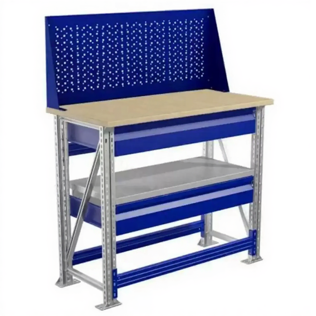 - Компактные размеры — столешница 1000х500 мм позволяет разместить верстак даже в небольших помещениях.