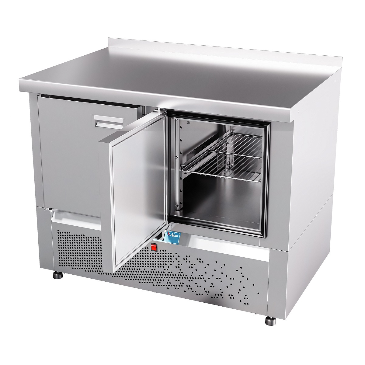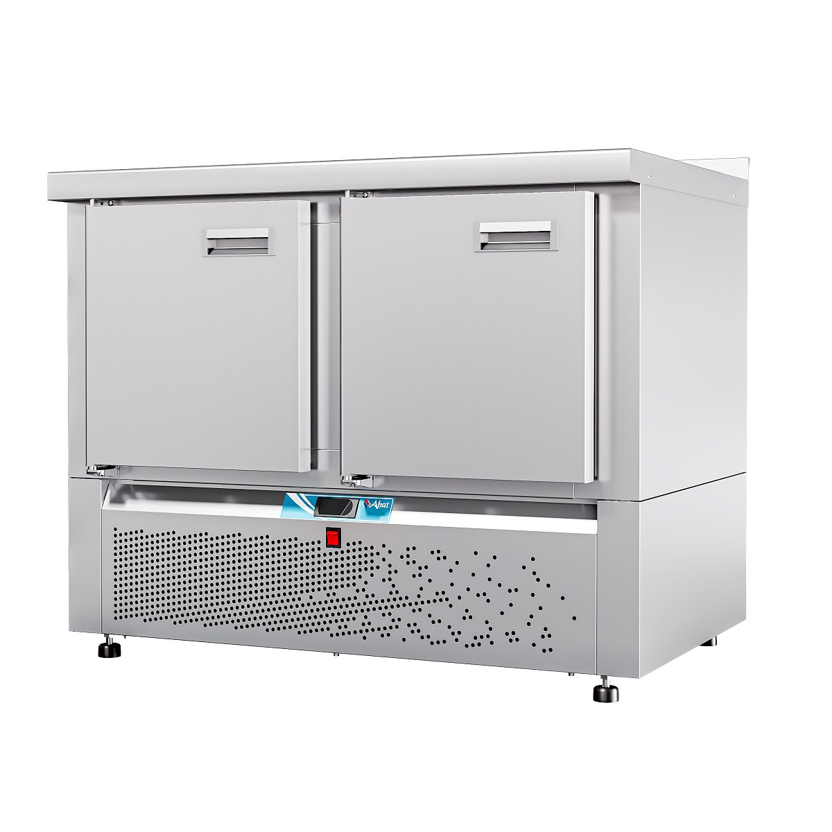 Особенности Электронная панель управления; потребление электроэнергии за сутки, кВт*ч, не более 3,36; климатический класс изделия - 5; поверхность стола - ровная неохлаждаемая поверхность без борта; толщина стенок 60 мм; холодильный агрегат расположен снизу, выдвижной для удобства обслуживания; хладагент - R404a; электронный блок управления с возможностью регулирования и поддерживания необходимой температуры; динамическое охлаждение - воздухоохладитель с вентилятором для равномерного распределение температуры внутри полезного объема; работа при температуре окружающей среды до +42 °C, относительной влажности от 40 до 70%; цельнозаливной пенополиуретаном корпус; автоматическая оттайка; 2 секции - две распашные двери с доводчиком; две регулируемые по высоте полки-решетка размером GN 1/1; уплотнитель с магнитной вставкой на двери для обеспечения полной теплоизоляци; передняя и задняя стенки легкосъемные; регулируемые по высоте ножки, которые могут опционально быть заменены на колеса (2 со стопором, 2 без стопора) без изменения высоты стола. Секции холодильных столов взаимозаменяемые. Предусмотрена возможность замены двери на секцию из одного или двух ящиков, и наоборот. Описание Стол холодильный низкотемпературный с нижним расположением агрегата предназначен для кратковременного хранения пищевых продуктов на предприятиях общественного питания и торговли. Рациональное использование рабочего пространства кухни за счет совмещения в одном изделии функции холодильного шкафа и рабочего стола.