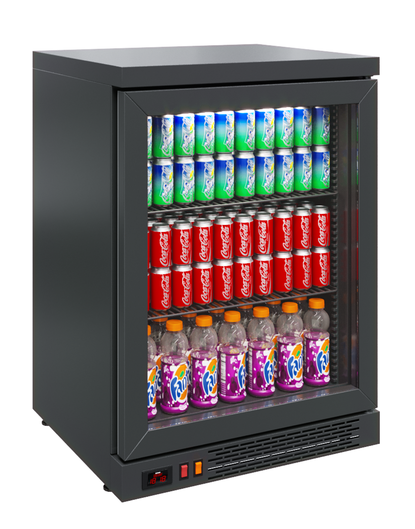 Особенности Оттайка автоматическая с системой испарения конденсата. Кол-во полок в комплекте: 2. Допустимая нагрузка на полку: 10 кг. Размер полки, мм500х360, Шаг установки полок, мм12,5. Толщина стенки корпуса - 43 мм. Подсветкавертикальная LED. Модель черного цвета. Электронный блок управления. Полезная нагрузка 25 кг. Описание Модель подходит для встраивания в барную стойку и пристенный модуль. Может использоваться и как самостоятельный пристенный модуль.Правостороннее открывание дверей со стеклопакетами в алюминиевых рамах может быть заменено по заказу на левостороннее .Возможна поставка без столешницы – как обыкновенный холодильный шкаф. Высота без столешницы – 810 мм.