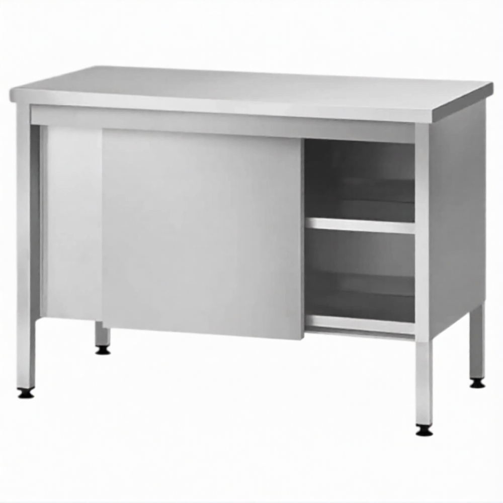 Стол производственный закрытый СПЗп 860х1000х600 «Profi Inox», двери-купе, полка сплошная