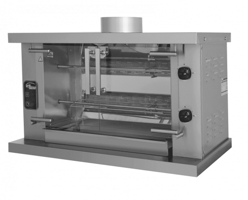 Гриль газовый Ф2У1Г — это профессиональное оборудование для предприятий общественного питания и торговли, предназначенное для приготовления целых тушек цыплят, куриных окорочков, крылышек и других продуктов. Модель имеет рамную конструкцию с цепной передачей вращения шампуров.