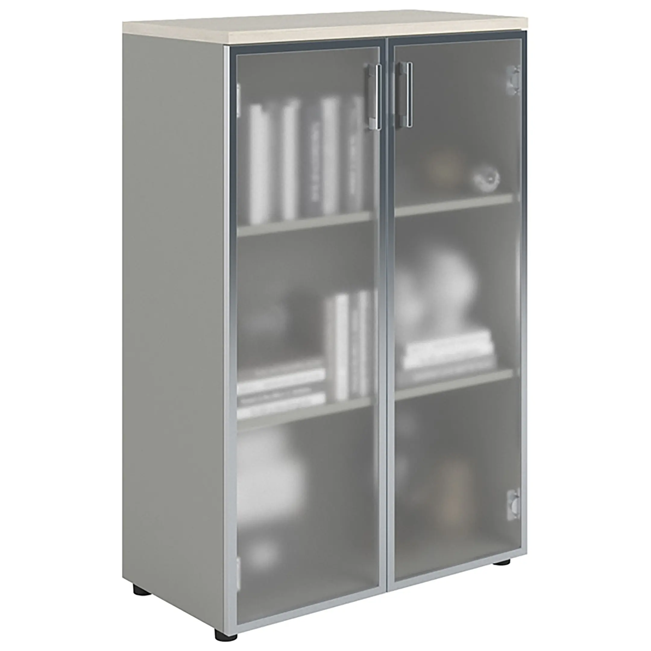 Шкаф NW 1280/2G со стеклом белое дерево/серый предназначен для хранения.