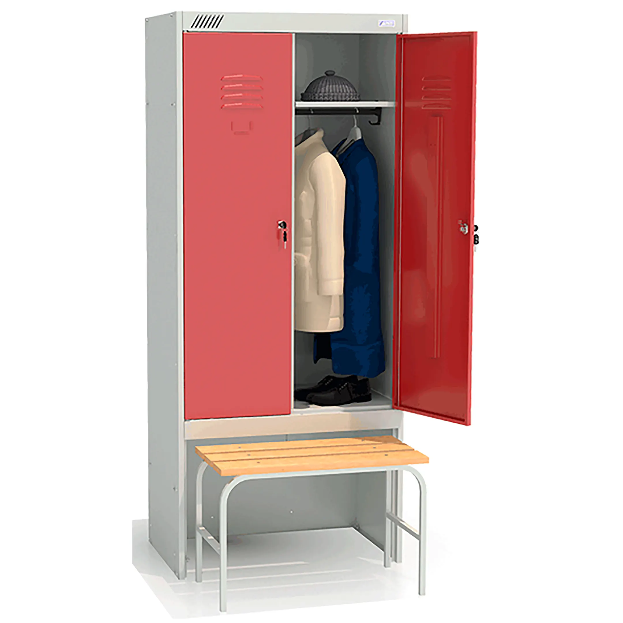 • комплектуется двумя замками повышенной секретности, двумя полками под головные уборы, двумя перекладинами, четырьмя крючками;