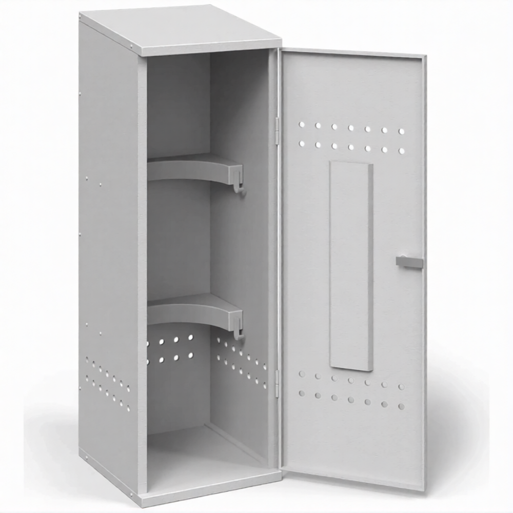 Шкаф для пропановых баллонов разборный ШПБР-01-0,8 мм — это экономичное и практичное решение для базового безопасного хранения одного стандартного пропанового баллона объемом до 50 литров, сочетающее в себе удобство транспортировки, простоту сборки и доступную цену. Модель представляет собой металлический шкаф, где аббревиатура «ШПБР» расшифровывается как «Шкаф для Пропановых Баллонов Разборный», индекс «01» указывает на вместимость для одного баллона, а «0,8 мм» обозначает толщину используемой стали. Разборная конструкция на болтовых соединениях разработана для легкой доставки и монтажа на месте без сварки, что делает её идеальным выбором для бытового использования, дач и временных объектов.
