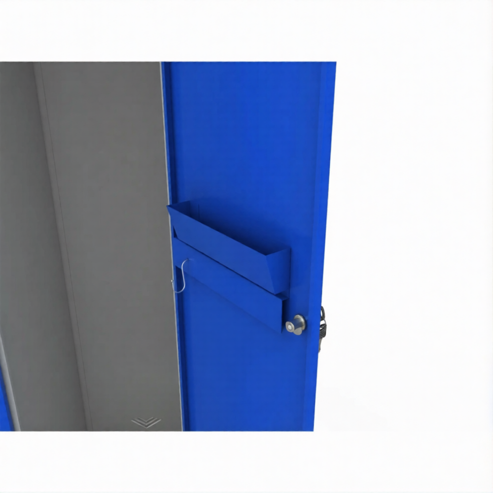 • Двери оснащены: крючками для полотенец - 2 шт., зеркальцем В150хШ150 мм, лотком В70хШ180хГ50 мм со скошенной передней стенкой для хранения мелочей (ключей, моб. телефона, очков и т.п.), держателями бирок В42хШ92 мм