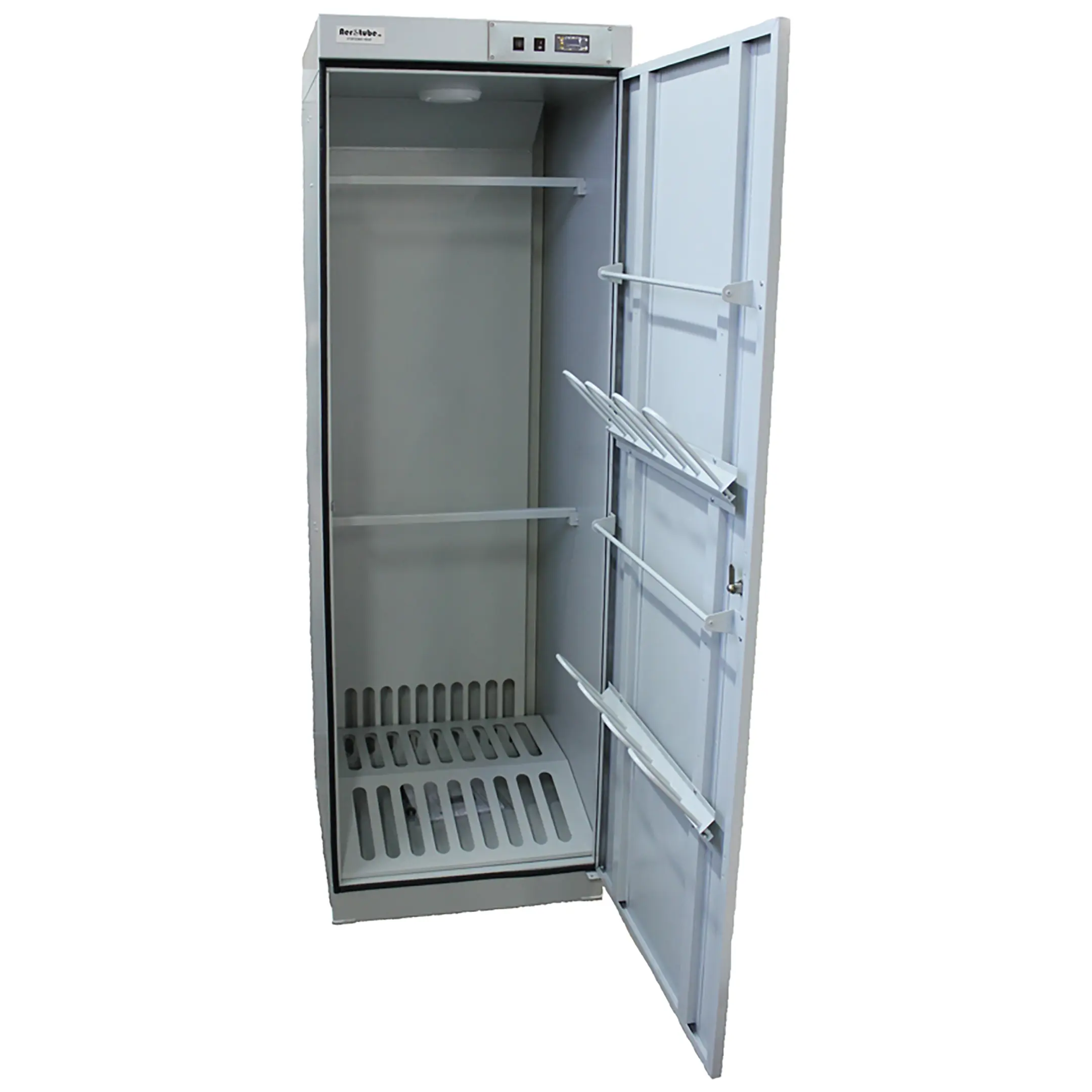 - Компактность и универсальность — модель имеет оптимальные габариты для помещений с ограниченным пространством. Благодаря съемной штанге шкаф легко адаптируется под различные задачи: от сушки комплекта спецодежды с обувью до обработки только спортивного инвентаря.